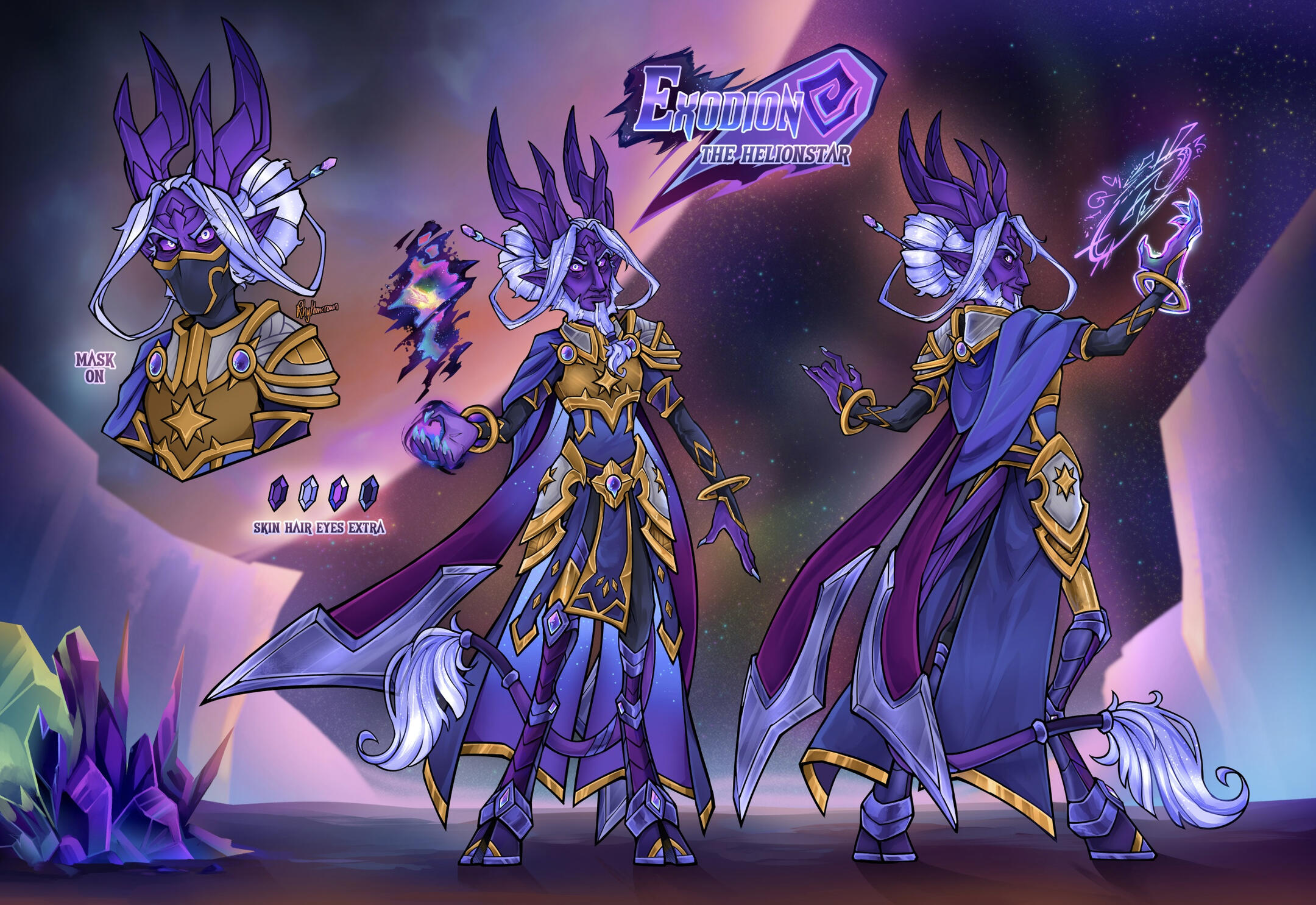 This option gets you a large HD rendered image for your character with two views or major features, additional formatting + design work, and text relevant to their vibe.Backgrounds can be simple colors, gradients, or an edited/painted-over screenshot for MMO characters. I do not charge extra for reasonable prop additions, and more involved sheets can be discussed.